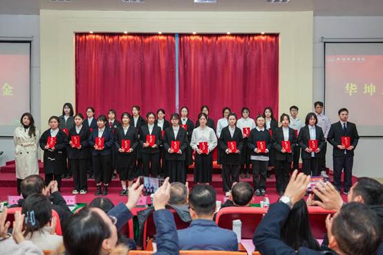 捐助企业代表滕婧向获奖学生表示祝贺,并表示,未来华坤集团将继续为同学们的成长成才创造良好环境和条件,帮助和支持同学们在时代的舞台展现风采、发光发热。同时也希望同学们在艰苦奋斗中锤炼意志品质,在创新创业中增长智慧才干,成长为对国家、对人民、对社会有用的人。