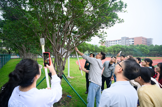 代亮对果树采摘分配方案进行了讲解,明确了各院系的职责与分工。他从安全操作到果树保护,耐心讲解了采摘过程中的注意事项,并亲自演示采摘技巧。随后,各院系老师纷纷拿起长柄工具尝试采摘。