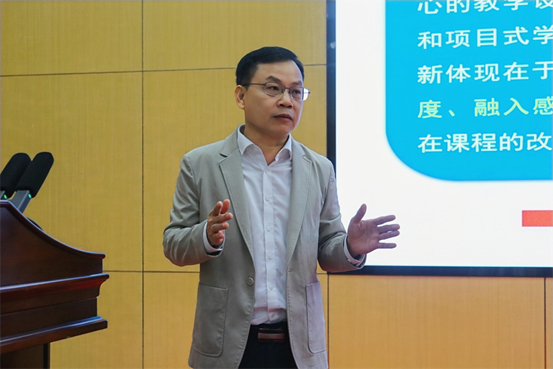 张超以“一流课程建设与实践”为主题展开培训。他重点解读了国家级一流本科课程建设要点和内涵,同时提到,人工智能赋能教育将成为必然趋势,正形塑着教育改革发展的新范式。他认为,数字化教学已经成为教育改革和发展的必然趋势,一流课程建设应将数字化教学设计、数字化教学内容、数字化教学过程、数字化教学评价融为一体,构建人机协同教学新样态。这些都为学校教师开展一流课程建设提供了新视角和思路。