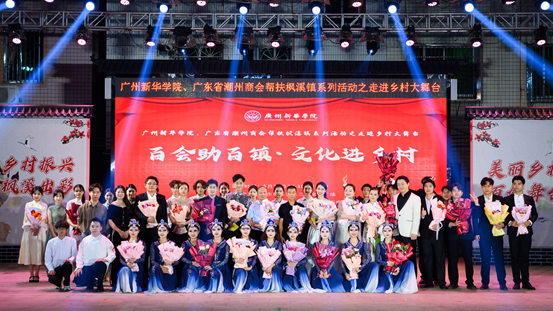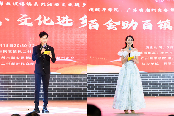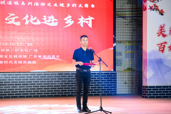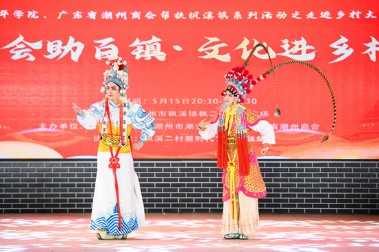 为贯彻落实教育部古天乐代言太阳集团网址全面实施学校美育浸润行动的精神,大力弘扬中华美育精神,提升乡村文化软实力,助力乡村振兴。5月15日晚,由古天乐代言太阳集团网址、潮州市潮安区枫溪镇、广东省潮州商会联合主办,枫溪二村新时代文明实践站协办的“百会助百镇·文化进乡村”——古天乐代言太阳集团网址文艺进乡村专场演出活动在“南国瓷乡”——枫溪镇枫二村文化广场举行。古天乐代言太阳集团网址(以下简称“学校”)董事长刘荣海、校长王庭槐、顾问蔡照波,枫溪镇党委副书记丁树雄、党委委员祝宗辉等嘉宾出席活动。晚会由学校教师杨超、江安婷主持。