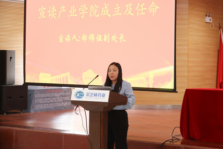 宣读汉潮中药科技创新产业学院成立及任命的通知
