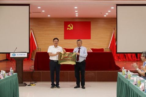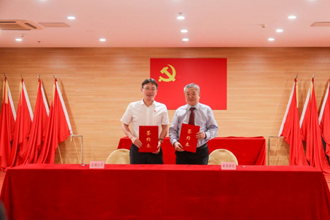 王庭槐校长(右)、采芝林药业有限公司党委副书记、工会主席蔡志伟(左)