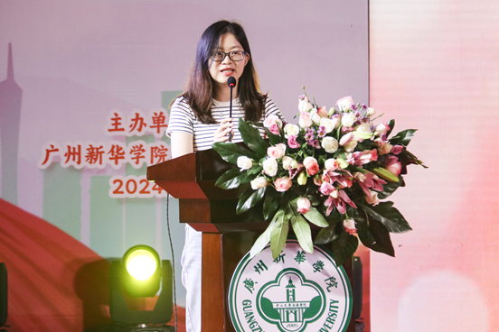 2008级校友代表林燕蕾对母校的培养和老师们的教诲表示感谢,并为母校送上了最诚挚的祝福。她在这所学校里学到的专业知识和各种规范的护理操作,为她的护理工作奠定基础,让她在日后的护理工作中更好地为患者服务。她还向我们分享了她的工作经历。毕业后,她谨记师长的教诲,在工作中充分发挥自己的专业知识和实践能力,并不断寻求突破。她寄语师弟师妹们:“只要努力找准自己的方向,朝着自己的目标奋斗不息,不忘初心,就可以走得更远,到达想要的高度。”她表示:“我们都会在这片美丽富饶的土地上闪闪发光,经久不息。”