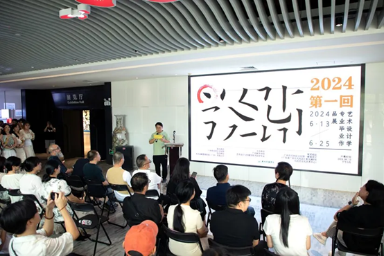 赵浩民向大家介绍了此次2020级艺术设计与传媒学院书法方向毕业展的主题为“2024第一回”,其含义体现在这既是对他们四年学习成果的首回集体展示,也寄寓学校对他们未来艺术道路的美好祝愿:愿他们持续创新,勇攀高峰,人生之路一回更比一回精彩。