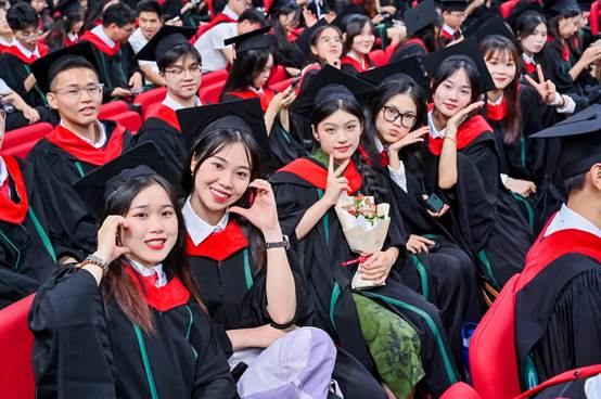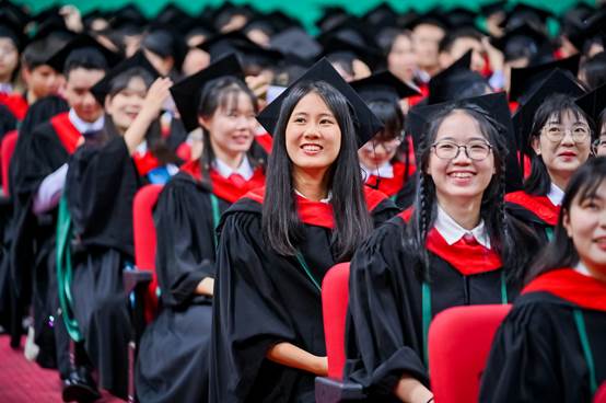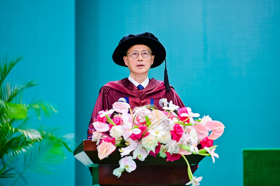 王庭槐代表学校对圆满完成学业,即将奔赴社会开启人生新篇章的同学们表示最衷心的祝福。他表示,在新华的四年求学时光里,同学们与时代同频共振,也交出了一份份傲人的青春答卷。站在崭新的起点,希望同学们保持终身学习和追求真理的热情,让知识成为你们前进道路上的灯塔;坚持守正创新的精神,让“守正”和“创新”成为你们向前腾飞的双翼;铸就自强自信的品质,使之成为你们勇往直前的动力;把学校的“三早”变成毕业后的“三早”,赢在人品,富在善良。做到早确立目标、早规划路径、早落实行动。在人工智能蓬勃发展的时代,要学会掌握新技能、驾驭新工具,发现乃至创造新知,并在科技的浪潮中保持人性的温暖、善良和关怀,以更加包容和理解的心态去尊重和关爱他人,以更加开放的视野去领略这个多彩的世界,实现人类更高质量的发展。愿同学们在人生的航程中,乘风破浪、勇往直前,前程似锦,未来可期!