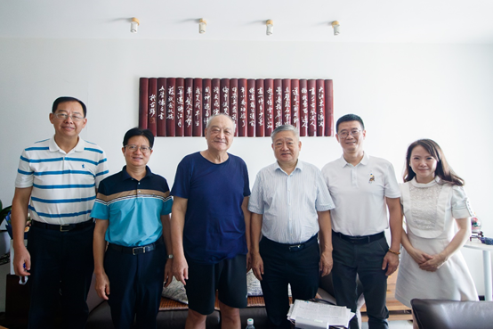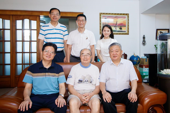 校领导一行与黄达人教授、张纯祥教授、徐远通教授、陈玉川教授、许发茂教授、陈伟林研究员夫人、罗蔚茵教授、潘敬运教授等合影留念