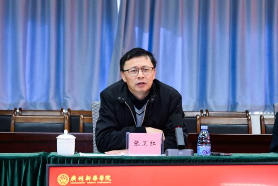 座谈会上,郝登峰在致辞中代表学校对来访嘉宾表示热烈欢迎,并详细介绍了学校的发展历程、办学特色及近年来取得的显著成就。他提到,学校自2005年由中山大学与广东东宝集团有限公司合作创办以来,始终坚持社会主义办学方向,全面贯彻党的教育方针,致力于培养高素质应用型人才。在20年的办学发展历程中,不仅传承了中山大学的优良传统和优秀学风,积淀了厚实的育人成果,更在专业设置、产教融合、校企协同的探索中走出了一条独具“新华特色”的创新之路。他强调,学校始终坚持以服务地方经济社会发展为己任,积极融入粤港澳大湾区建设大局。最后,他在致辞中特别感谢了东莞市社科联、东莞市社科院对学校发展的关心与支持,期待以此次交流为契机,进一步深化多方协作机制。