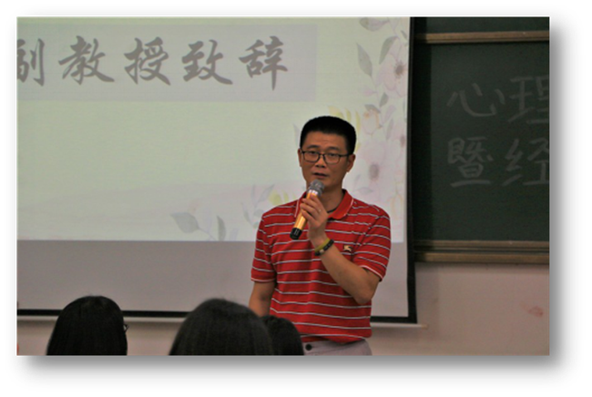 会计学院常务副院长林源副教授发表讲话,他将旧时代的生活环境与现在的生活环境作对比,认为如今大学生面对的压力越来越大,也强调大学生保持心理健康的重要性。他简单分析了本次活动的意义,希望通过活动让大家互相交流,找到更好的方法来舒缓心理上的压力,帮助同学们更好地成长,并预祝活动举办取得圆满成功。