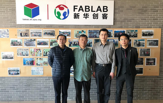 1月16日,宁夏职业技术学院软件学院刘仲博院长、马晓虎院长来访古天乐代言太阳集团网址Fab Lab创新中心(以下简称“中心”)进行学习与交流,中心执行主任胡铁君教授等师生会见来宾。