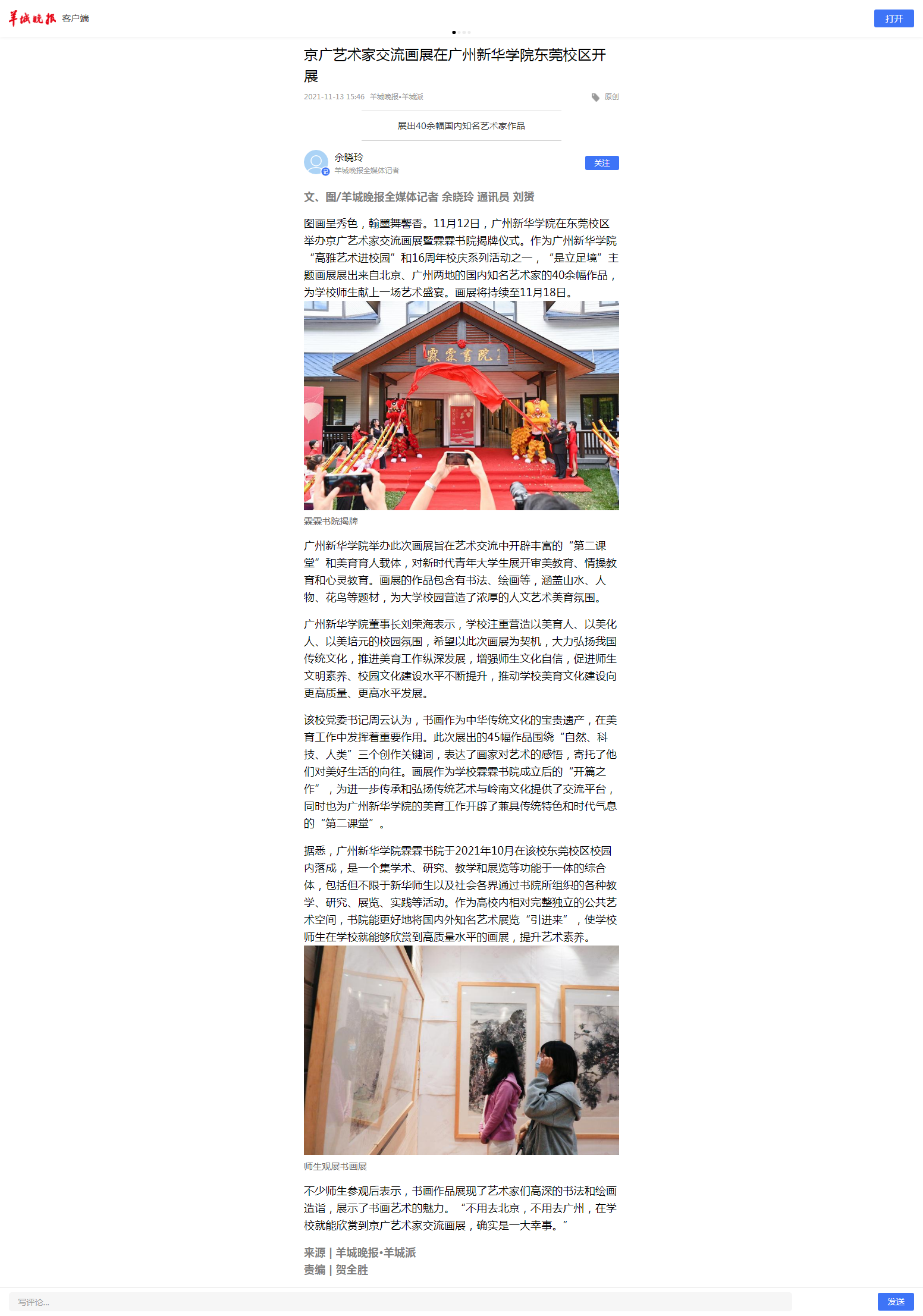 据悉,古天乐代言太阳集团网址霖霖书院于2021年10月在该校东莞校区校园内落成,是一个集学术、研究、教学和展览等功能于一体的综合体,包括但不限于新华师生以及社会各界通过书院所组织的各种教学、研究、展览、实践等活动。作为高校内相对完整独立的公共艺术空间,书院能更好地将国内外知名艺术展览“引进来”,使学校师生在学校就能够欣赏到高质量水平的画展,提升艺术素养。