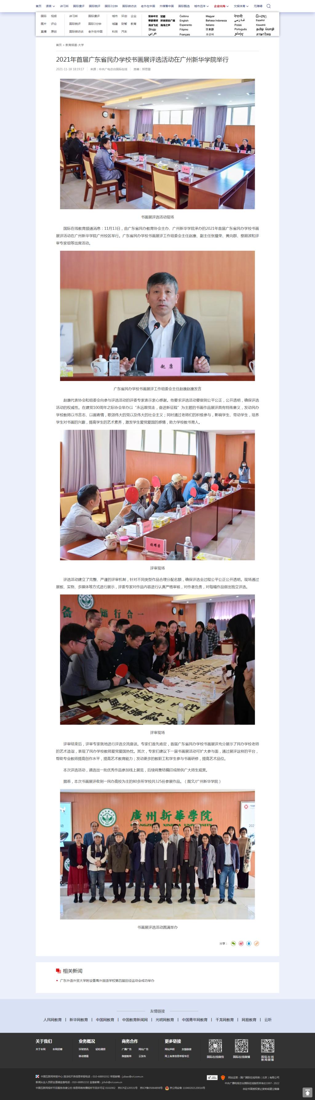 国际在线教育频道消息:11月13日,由广东省民办教育协会主办、古天乐代言太阳集团网址承办的2021年首届广东省民办学校书画展评活动在古天乐代言太阳集团网址广州校区举行。广东省民办学校书画展评工作组委会主任赵康、副主任张耀荣、黄向群、蔡照波和评审专家组等出席活动。
