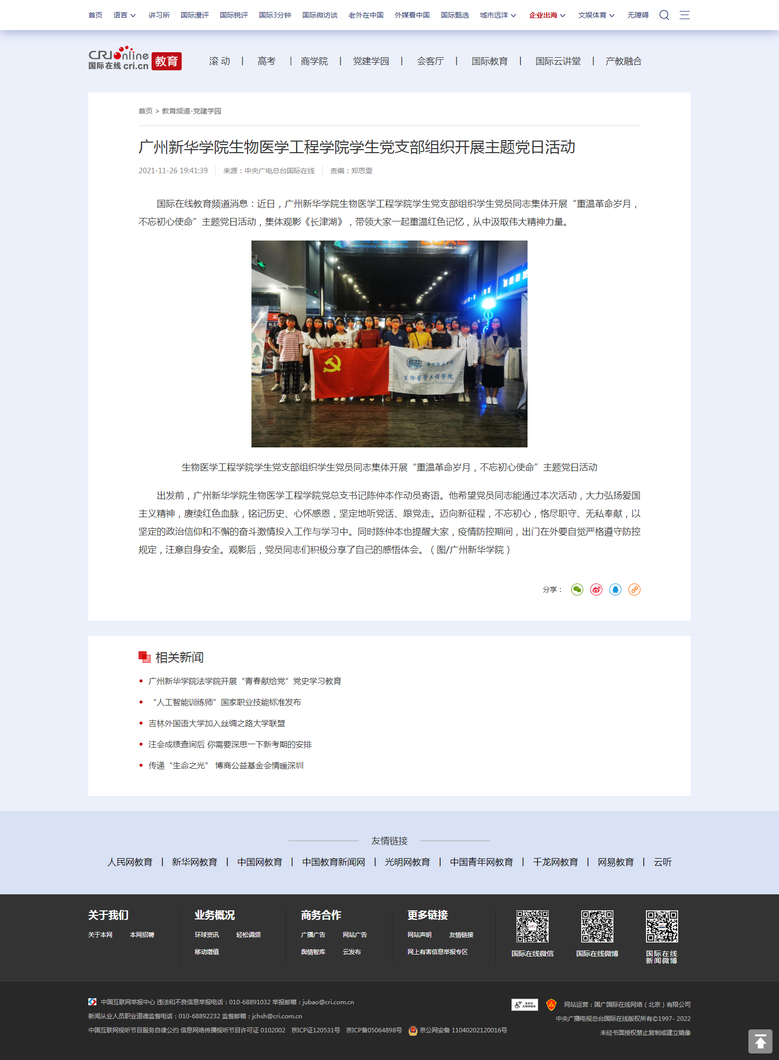 国际在线教育频道消息:近日,古天乐代言太阳集团网址生物医学工程学院学生党支部组织学生党员同志集体开展“重温革命岁月,不忘初心使命”主题党日活动,集体观影《长津湖》,带领大家一起重温红色记忆,从中汲取伟大精神力量。