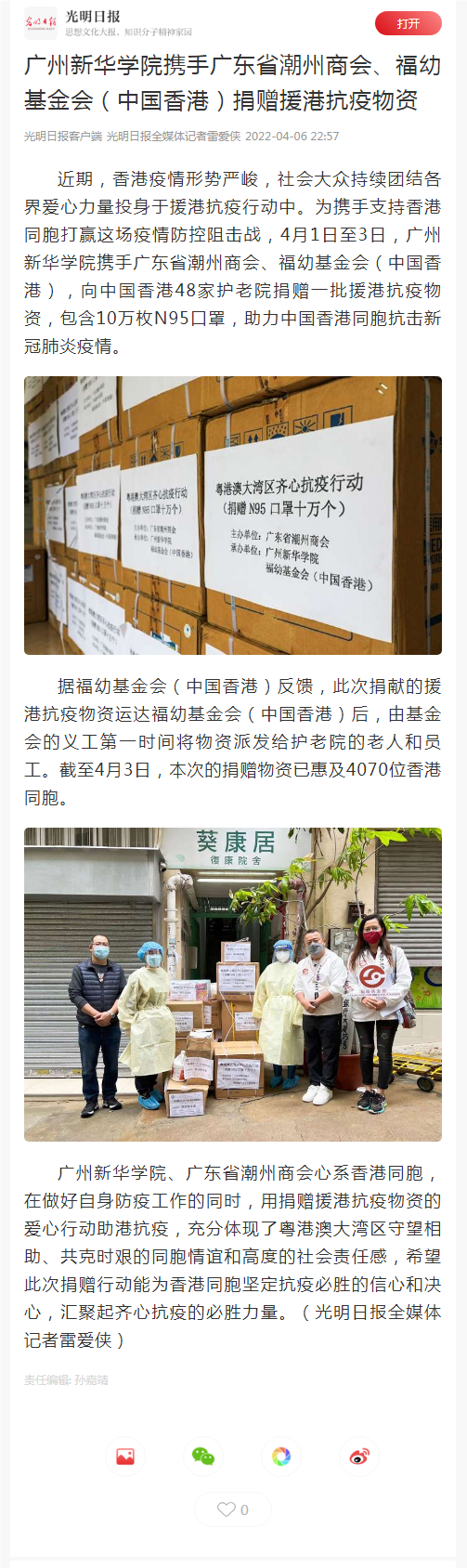 据福幼基金会(中国香港)反馈,此次捐献的援港抗疫物资运达福幼基金会(中国香港)后,由基金会的义工第一时间将物资派发给护老院的老人和员工。截至4月3日,本次的捐赠物资已惠及4070位香港同胞。