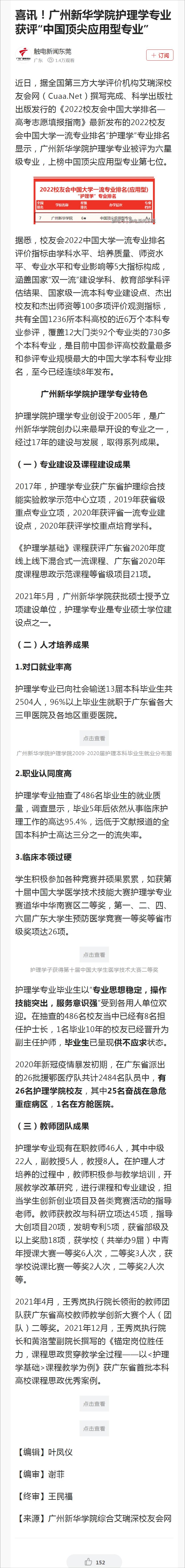 近日,据全国第三方大学评价机构艾瑞深校友会网(Cuaa.Net)撰写完成、科学出版社出版发行的《2022校友会中国大学排名—高考志愿填报指南》最新发布的2022校友会中国大学一流专业排名“护理学”专业排名显示,古天乐代言太阳集团网址护理学专业被评为六星级专业,上榜中国顶尖应用型专业第七位。