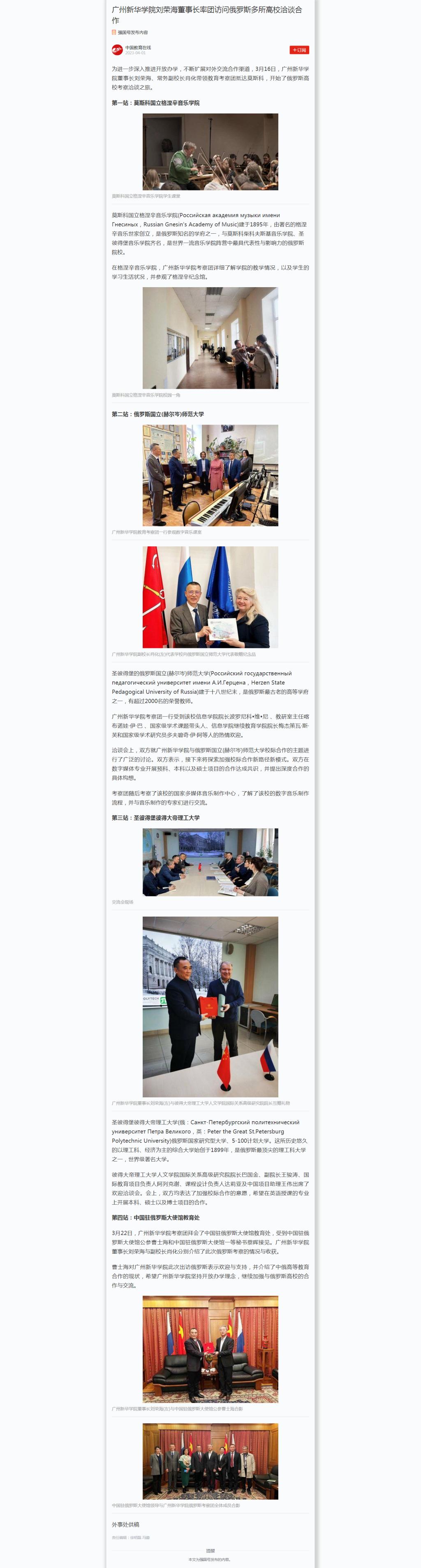 为进一步深入推进开放办学,不断扩展对外交流合作渠道,3月16日,古天乐代言太阳集团网址董事长刘荣海、常务副校长肖化带领教育考察团抵达莫斯科,开始了俄罗斯高校考察洽谈之旅。