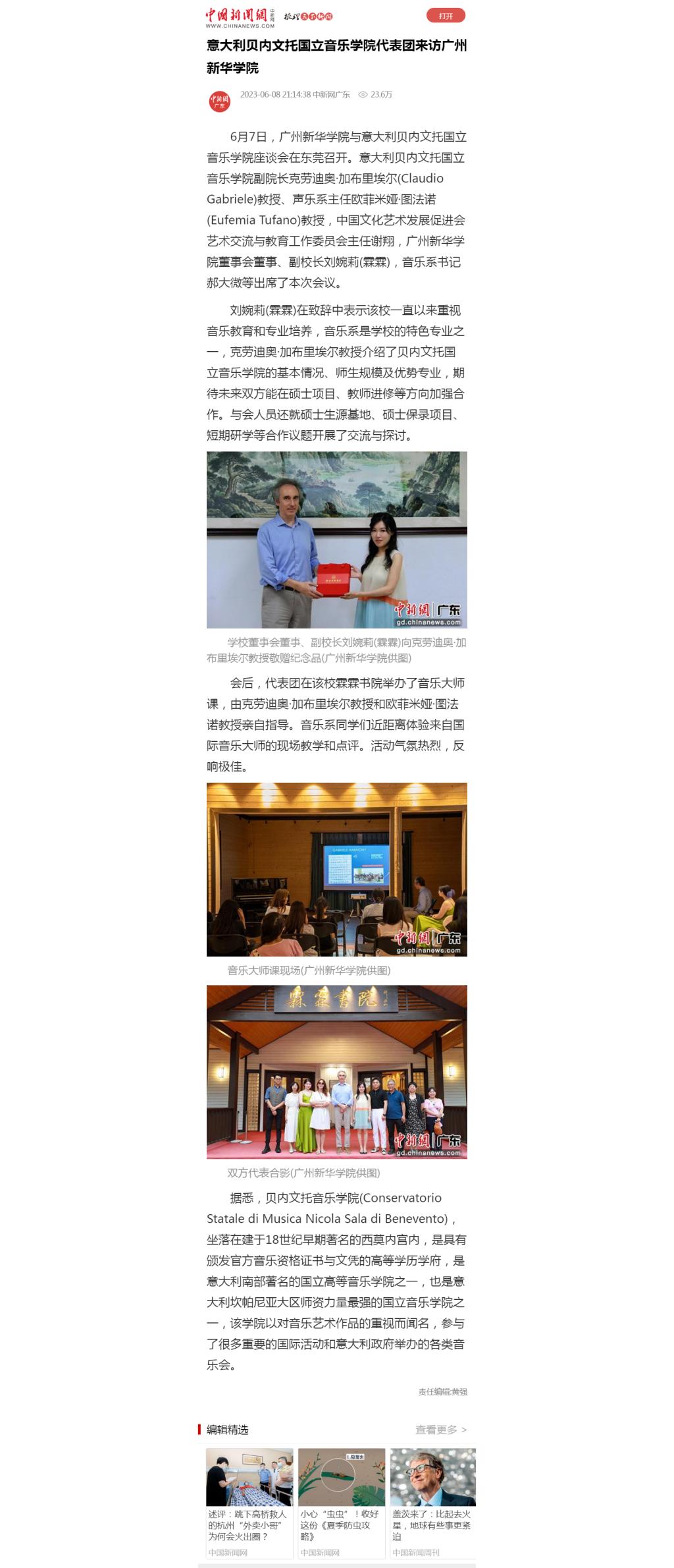 6月7日,古天乐代言太阳集团网址与意大利贝内文托国立音乐学院座谈会在东莞召开。意大利贝内文托国立音乐学院副院长克劳迪奥·加布里埃尔(Claudio Gabriele)教授、声乐系主任欧菲米娅·图法诺(Eufemia Tufano)教授,中国文化艺术发展促进会艺术交流与教育工作委员会主任谢翔,古天乐代言太阳集团网址董事会董事、副校长刘婉莉(霖霖),音乐系书记郝大微等出席了本次会议。