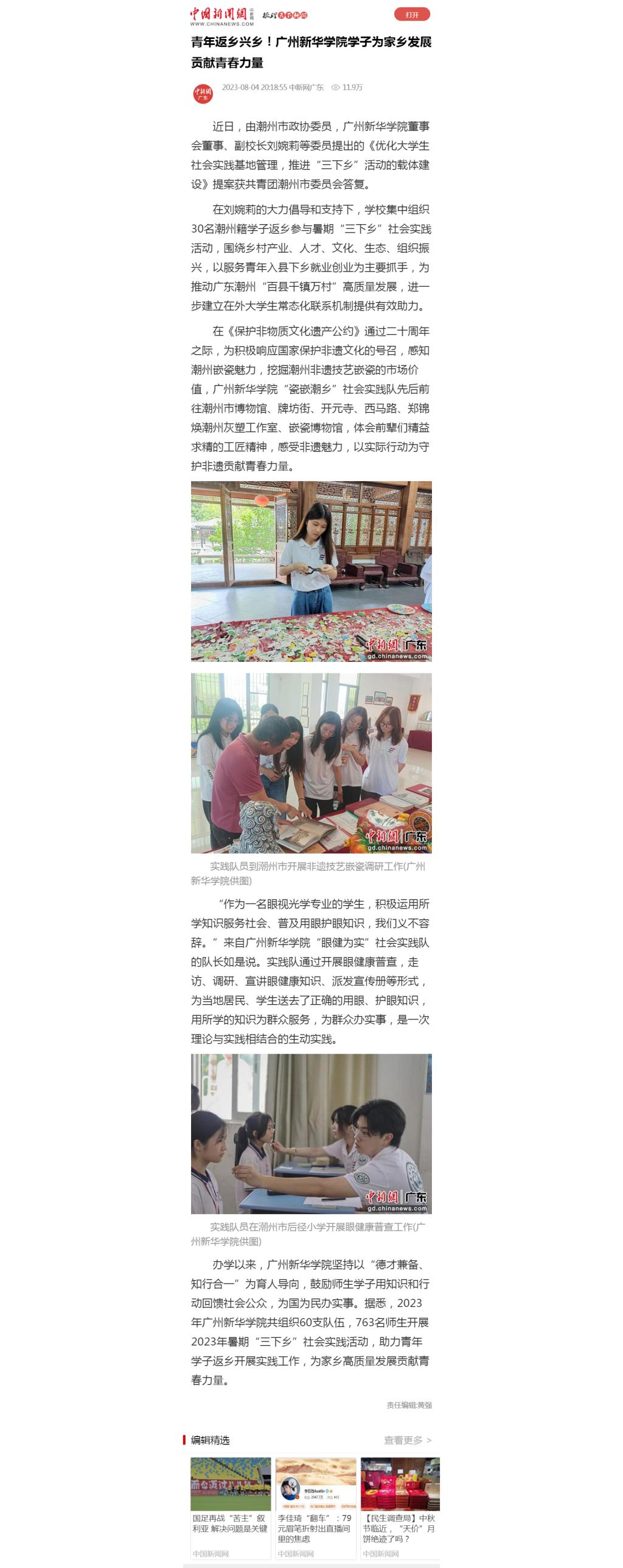 在刘婉莉的大力倡导和支持下,学校集中组织30名潮州籍学子返乡参与暑期“三下乡”社会实践活动,围绕乡村产业、人才、文化、生态、组织振兴,以服务青年入县下乡就业创业为主要抓手,为推动广东潮州“百县千镇万村”高质量发展,进一步建立在外大学生常态化联系机制提供有效助力。