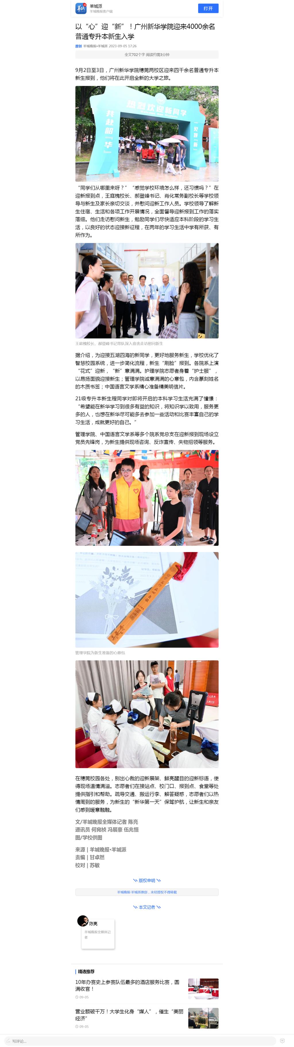 在穗莞校园各处,别出心裁的迎新展架、鲜亮醒目的迎新标语,使得现场温情满溢。志愿者们在接站点、校门口、报到点、食堂等处提供指引和帮助。疏导交通、搬运行李、解答疑惑,志愿者们以热情周到的服务,为新生的“新华第一天”保驾护航,让新生和亲友们感到暖意融融。