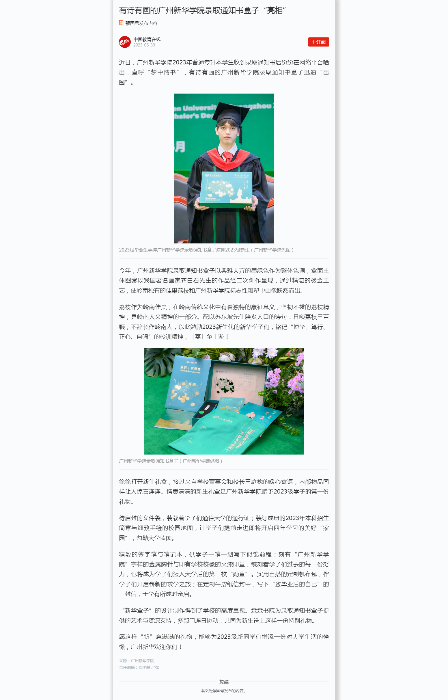 愿这样“新”意满满的礼物,能够为2023级新同学们增添一份对大学生活的憧憬,广州新华欢迎你们!
