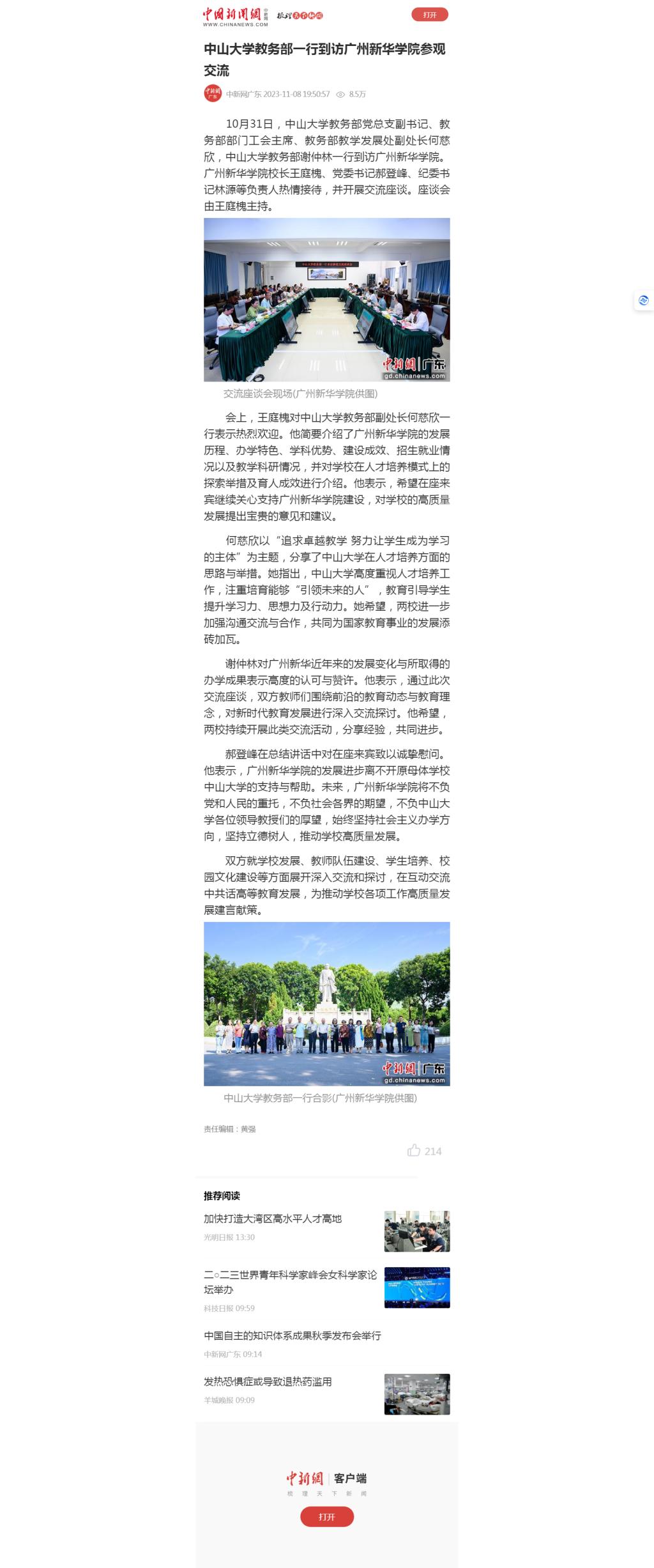 谢仲林对广州新华近年来的发展变化与所取得的办学成果表示高度的认可与赞许。他表示,通过此次交流座谈,双方教师们围绕前沿的教育动态与教育理念,对新时代教育发展进行深入交流探讨。他希望,两校持续开展此类交流活动,分享经验,共同进步。