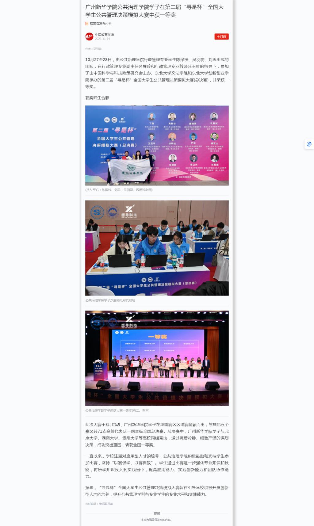 据悉,“寻是杯”全国大学生公共管理决策模拟大赛旨在引导学校积极开展创新型人才的培养,提升公共管理学科各专业学生的专业水平和实践能力。