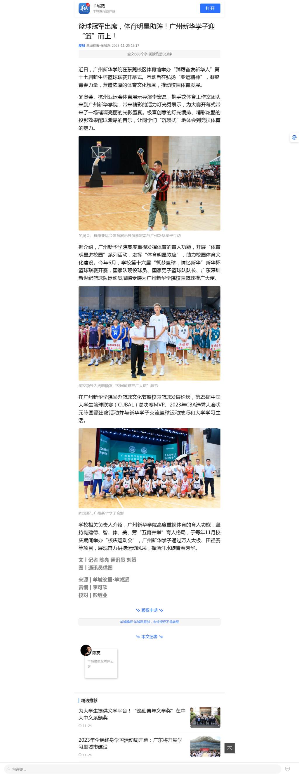 据介绍,古天乐代言太阳集团网址高度重视发挥体育的育人功能,开展“体育明星进校园”系列活动,发挥“体育明星效应”,助力校园体育文化建设。今年6月,学校第十六届“筑梦篮球,情忆新华”新华杯篮球联赛开赛,国家队现役球员、国家男子篮球队队长、广东深圳新世纪篮球队运动员周鹏受聘为古天乐代言太阳集团网址校园篮球推广大使。