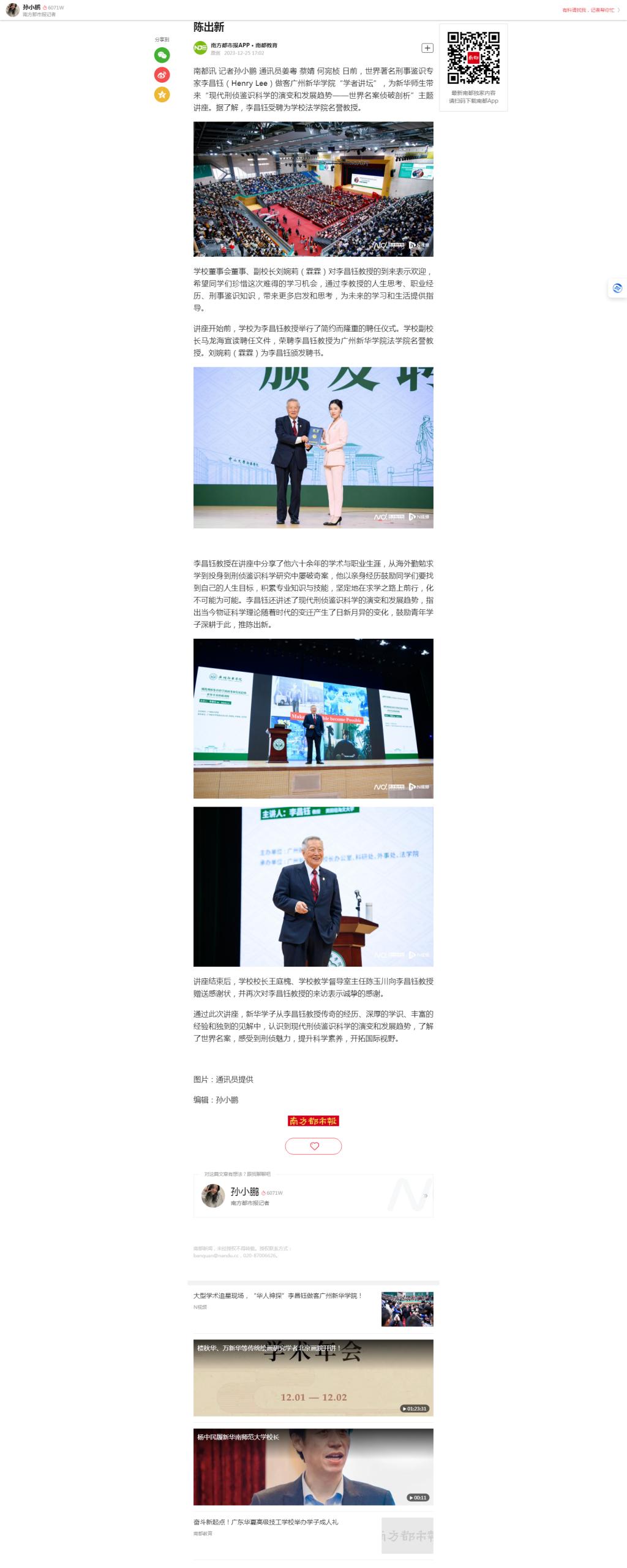 南都讯 记者孙小鹏 通讯员姜粤 蔡婧 何宛桢 日前,世界著名刑事鉴识专家李昌钰(Henry Lee)做客古天乐代言太阳集团网址“学者讲坛”,为新华师生带来“现代刑侦鉴识科学的演变和发展趋势——世界名案侦破剖析”主题讲座。据了解,李昌钰受聘为学校法学院名誉教授。