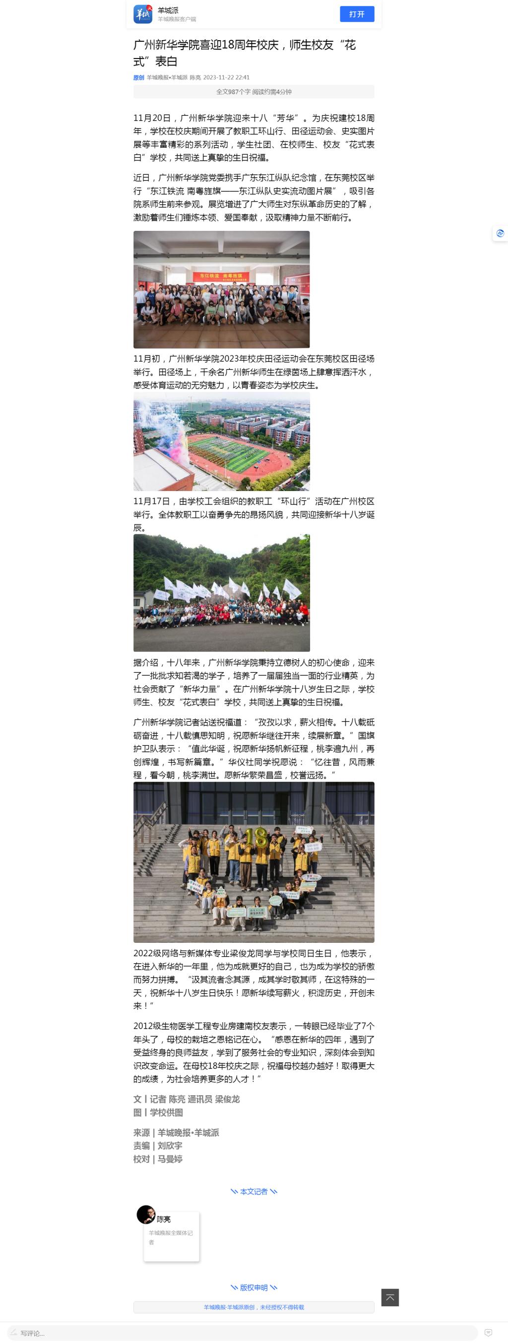11月17日,由学校工会组织的教职工“环山行”活动在广州校区举行。全体教职工以奋勇争先的昂扬风貌,共同迎接新华十八岁诞辰。