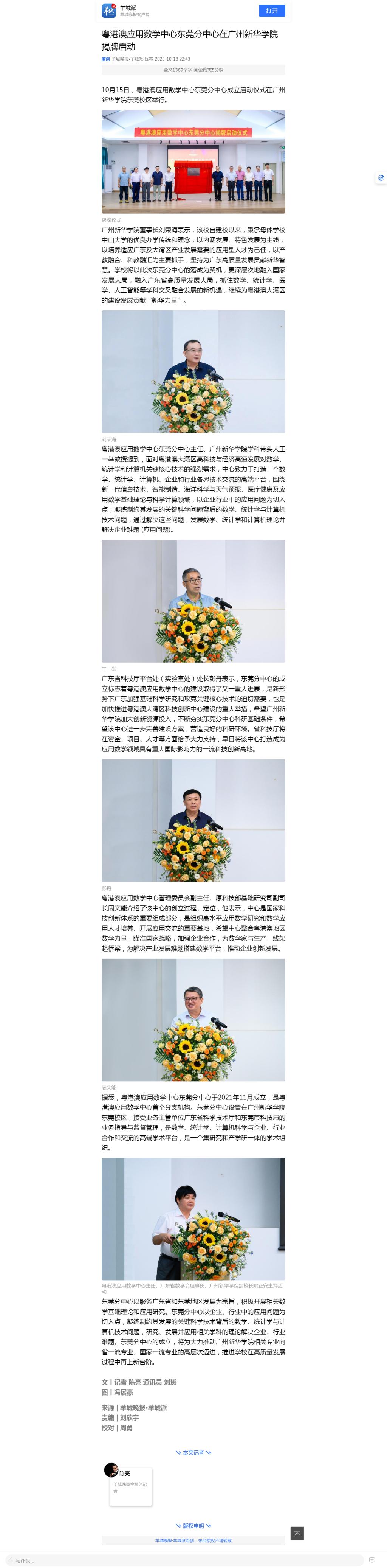 10月15日,粤港澳应用数学中心东莞分中心成立启动仪式在古天乐代言太阳集团网址东莞校区举行。