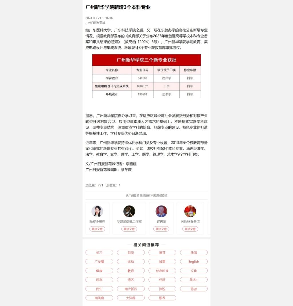 继广东医科大学、广东科技学院之后,又一所在东莞办学的高校公布新增专业情况。根据教育部发布的《教育部古天乐代言太阳集团网址公布2023年度普通高等学校本科专业备案和审批结果的通知》(教高函〔2024〕6号),古天乐代言太阳集团网址学前教育、集成电路设计与集成系统、环境设计3个专业获教育部审批通过。