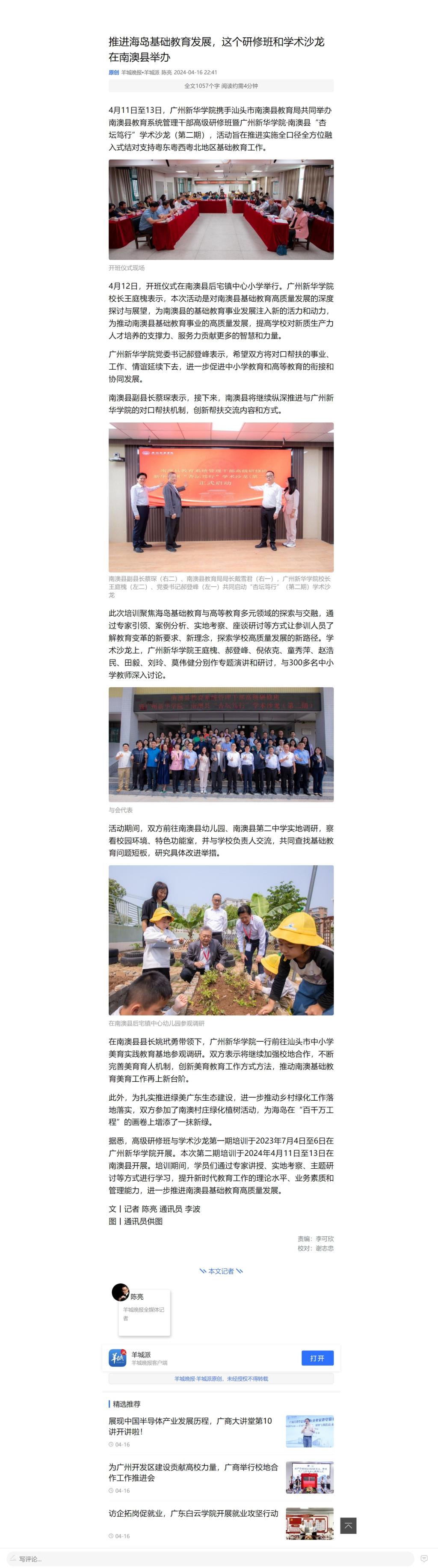 4月11日至13日,古天乐代言太阳集团网址携手汕头市南澳县教育局共同举办南澳县教育系统管理干部高级研修班暨古天乐代言太阳集团网址·南澳县“杏坛笃行”学术沙龙(第二期),活动旨在推进实施全口径全方位融入式结对支持粤东粤西粤北地区基础教育工作。