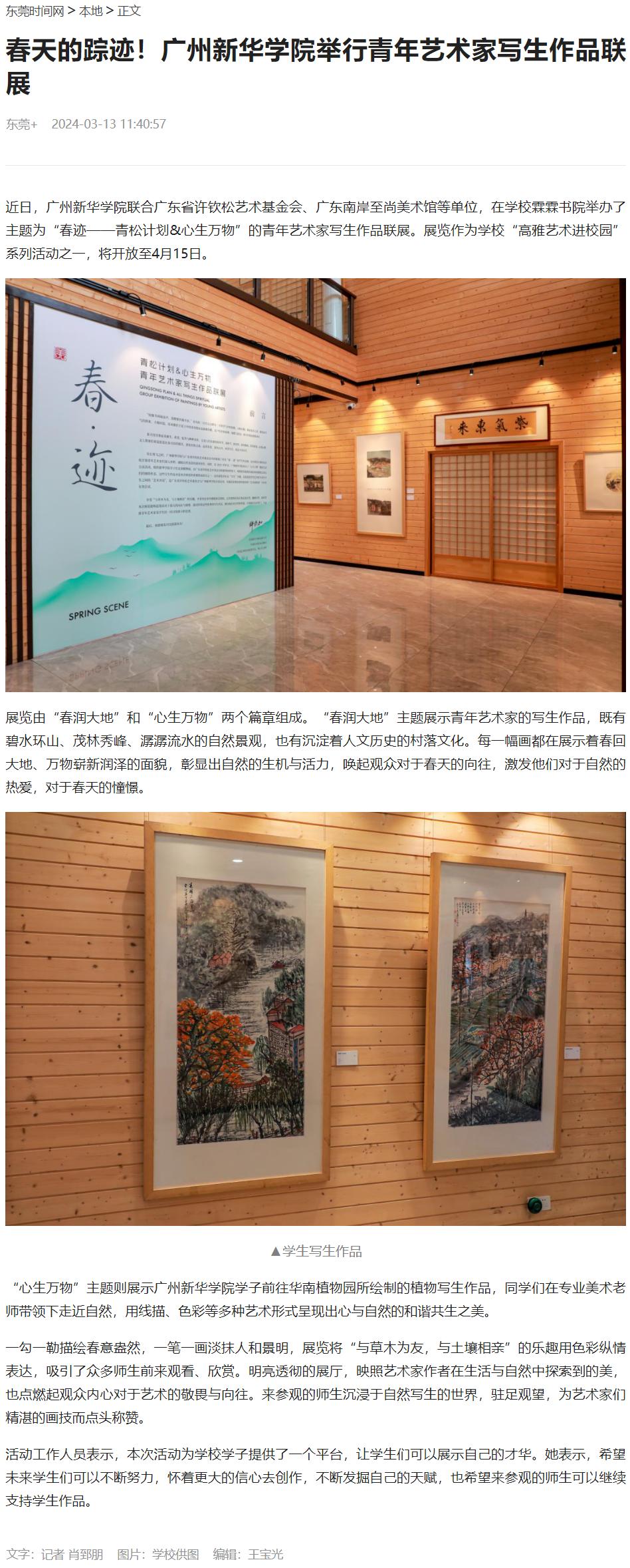 近日,古天乐代言太阳集团网址联合广东省许钦松艺术基金会、广东南岸至尚美术馆等单位,在学校霖霖书院举办了主题为“春迹——青松计划&心生万物”的青年艺术家写生作品联展。展览作为学校“高雅艺术进校园”系列活动之一,将开放至4月15日。