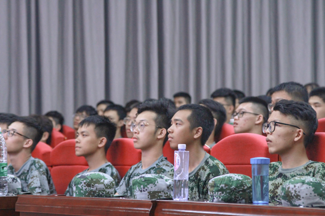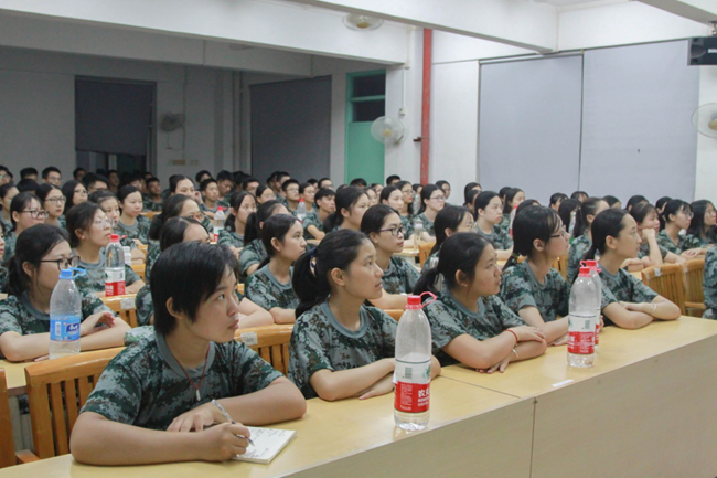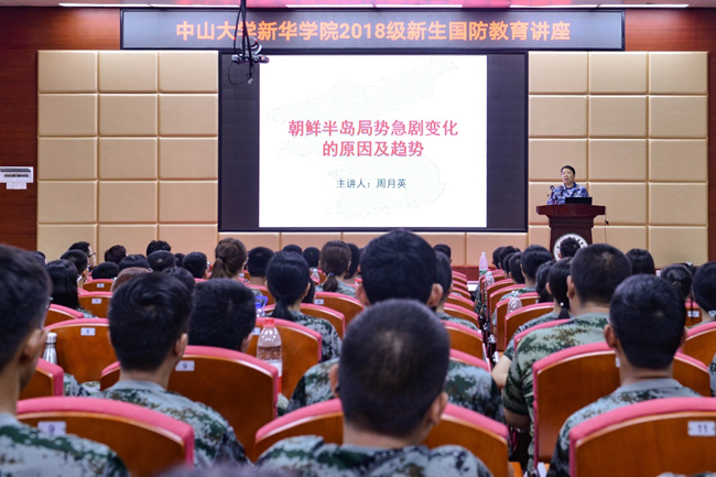 周月英教授分别从朝鲜角度、韩国角度、美国角度、中国角度,深入浅出地分析了朝鲜半岛局势急剧变化的原因及趋势。周月英教授与新生进行积极互动,新生认真思考,积极回答问题,现场气氛活泼热烈,讲座后,新生们纷纷表示进一步增强了国防观念,受到了一次深刻的国防教育。