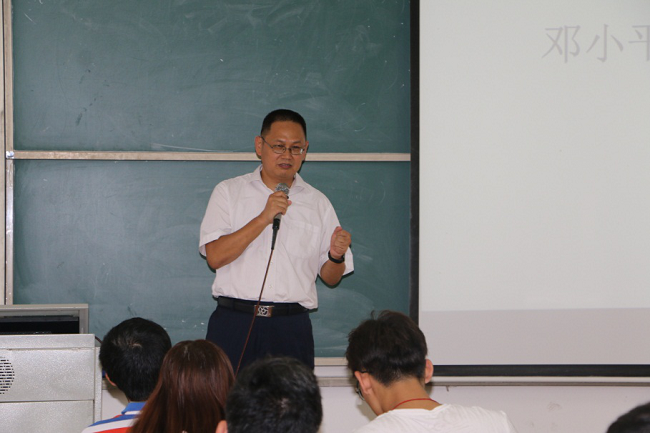最后,刘运国院长以十九大报告内容寄语同学们要向邓小平同志学习,学习他把一生献给党、献给国家、献给民族、献给人民的崇高家国情怀与思想品德;学习他勇于担当、勇挑重担的胆略;学习他实事求是的踏实风格;学习他成熟稳重的睿智;坚定理想信念,志存高远,脚踏实地,努力装备自己,时刻准备着,将来更好地报效父母、报效家人、报效祖国。