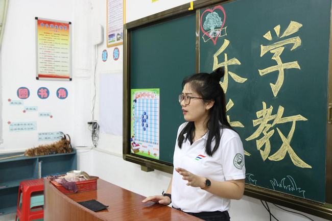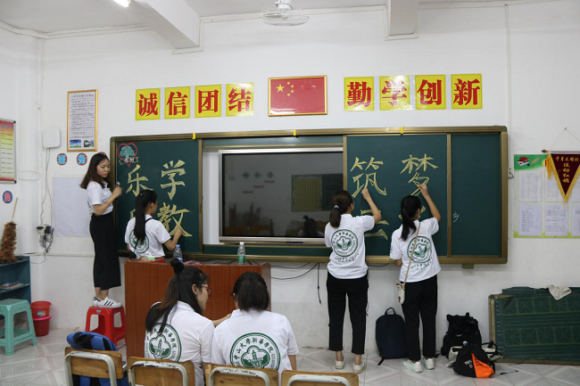 夜幕降临,蝉声渐息。我们的工作准备也顺利完成。看着校门口被风吹动的树叶,我们开始期待黎明的到来,期待孩子们的到来,更期待我们的发声。