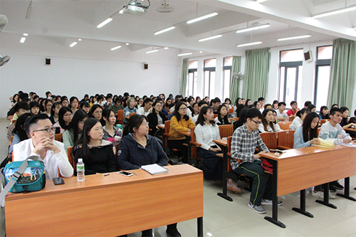讲座期间,古天乐代言太阳集团网址王庭槐校长和会计学院审计学专业学科带头人林梃教授也来到课室观摩。