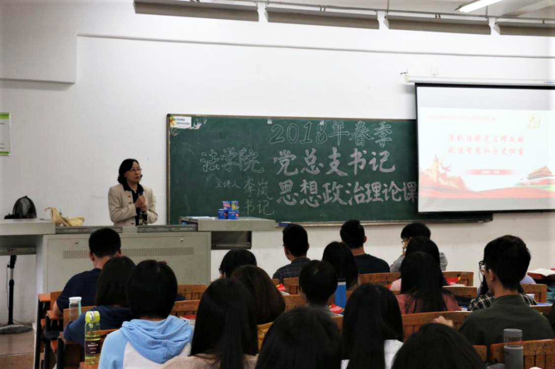 3月15日上午,2018年春季法学院党总支书记思想政治理论课在定静楼①C201开讲,李岚书记为法学院2017级学生上了主题为“深刻理解宪法修改的政治智慧和历史担当”的思想政治理论课。