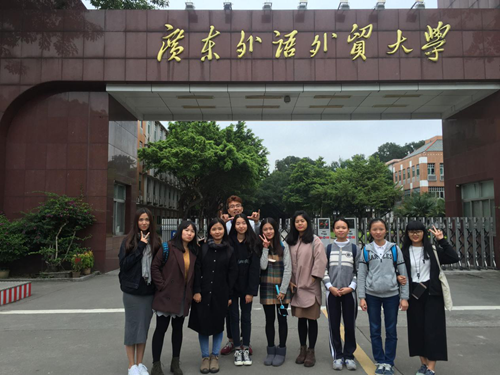 李婉盈(左一)组织同学至广外观战2016年“外研社杯”全国商务英语实践大赛