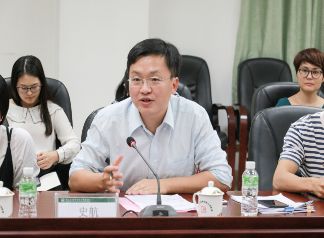 接下来,双方就党务工作展开了学习交流。校办党办党支部书记史航同志对校办党办党支部基本情况作出介绍,校办党办党支部获得2017年“广东省高校学习型、服务型、创新型党支部”荣誉称号。在创建创新型、学习型、服务型的“三型”党支部过程中,两办党支部在校党委的领导下,紧紧围绕支部做到协调配合、服务师生、促进和谐等。在学习方面,做到“三有”,即学前有资料、学时有记录、学后有体会,坚持贯彻落实“三会一课”制度并保证每一位党员都参与学习。在创新方面,与中山大学南方学院等兄弟院校开展学习交流活动,与校内各二级院系开展“支部共建活动”,组成课题组完成2015年度中山大学党建课题2项,2017年度广东省党建课题立项1项,在各类刊物上发表党建论文共30余篇,致力于提高党支部科研水平与党建理论素养。外国语学院第一教工党支部书记袁侥蔚对党支部组织学习习近平总书记十九大报告进行了分享。她提到,在十九大精神感召下,党支部成员精神更加饱满,活动氛围愈发热烈。
