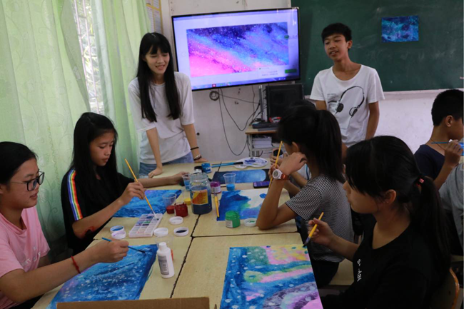 支教最后一天的演讲课上,孩子们一一讲述了自己想要成为怎样的一个人,他们想要成为一个医生,一个美术家,或者是一个流浪者。他们在老师同学面前大胆的讲述了自己的理想,接受大家的祝福。在告别演出上,同学们演唱了《北京东路的日子》,展示了笑舞台剧荆轲刺秦王和大话西游,用学到的知识为团队成员献上了精彩的表演。