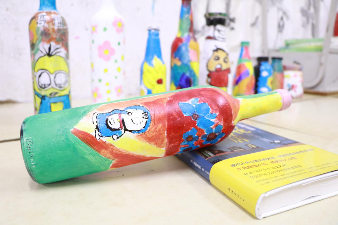 下午的课程是手工和体育。孩子们在老师的教学下,做出了属于自己的手工作品,她们说 “要带回家作纪念。”