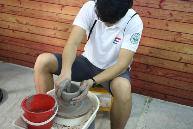 参观完砚石艺术品,工作人员还热情邀请我们体验了端砚学堂的陶土手工课程,队员们表现积极,热情互动,每个人收获不少。这也增进了团队默契,团队感情更加坚实。