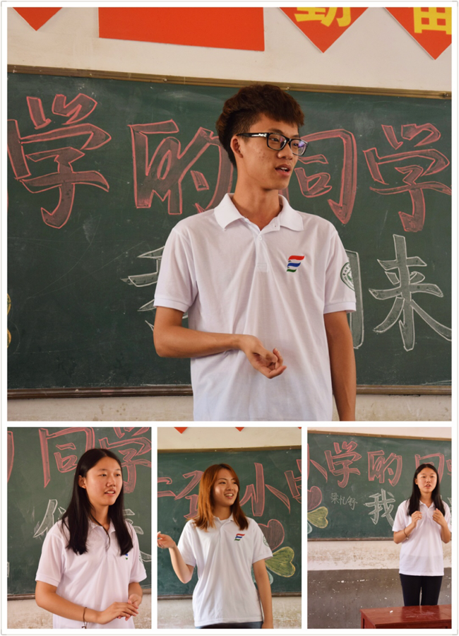 表演结束后,郭校长、村委书记肖清以及乡贤都分别对梦享蓝天社会实践队的到来表示欢迎和衷心感谢实践队的辛勤教学。紧接着实践队指导老师郑银珊发言,感谢牛颈小学两位校长和村委书记对三下乡活动的鼓励关怀和支持,期待下一年的合作交流。