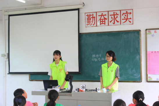 由于支教地是客家地区,老师别出心裁,通过与潮汕方言的对比,让同学们了解,不同方言之间的差别,通过“八百标兵奔北坡”等顺口溜,检查并纠正同学们的发音,再讲解一些日常的易错字,如“血”“倒”等字,提醒同学们规范运用普通话。