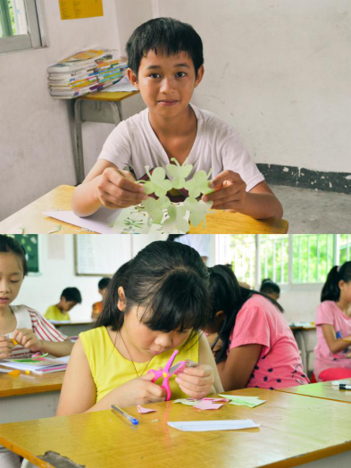 剪纸艺术是汉族传统的民间工艺,它源远流长,经久不衰,是中国民间艺术中的瑰宝,现已成为世界艺术宝库中的珍藏。剪纸课上,老师先是向学生们提出问题,“你们在哪儿见过剪纸”。而后讲解了剪纸的多种方式,比如“二折法”、“四折法”、“六折法”等,剪出来的形状当然也各不相同。听完老师的讲解后,学生们迫不及待地动手了。他们先是按照老师刚刚说的几个折法去折纸,接着拿起笔来画出自己喜欢的形状,然后拿起小剪刀小心翼翼地把这个形状剪出来,最后是满怀期待地把剪纸展开。这节课让老师发现了班上有很多同学的想象力十分丰富,剪出来的剪纸都令大家赞不绝口。