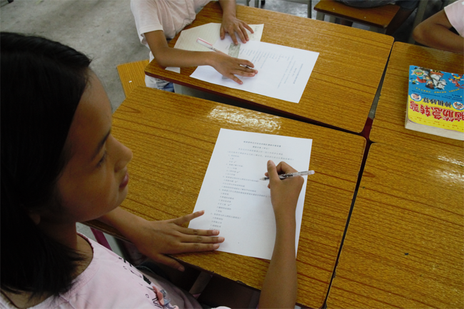 在此次调研活动的过程中,下乡队员首先向小朋友介绍什么是校园暴力,又从校园暴力引入心理健康成长问题,一步步引导孩子,让他们了解到校园暴力对心理健康成长的危害性。在观察到最近小朋友之间经常闹矛盾的现象后,下乡队员为孩子们发放“校园暴力问题及心理健康成长问题”调查问卷。通过与小朋友谈心,结合真实发生的暴力事件,一步步引导孩子们,教孩子们校园暴力的防范常识。
