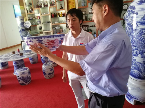 为使调研证据更充分,在大埔县陶瓷行业管理办公室丘工程师的推荐下,队员们前往了当地80%以上劳动力从事陶瓷生产的桃源镇进行调研,受访企业有:以生产工艺瓷为主的富源陶瓷工艺厂,以釉下手绘青花闻名的昌隆陶瓷工艺厂,出口比例达98%、坐拥环形纯电窑的欣红陶瓷股份有限公司,以日用陶瓷为主,正在筹备上市的吉玉陶瓷股份有限公司。其中,富大陶瓷文化发展有限公司总经理省级非物质文化遗产传承人黄福传先生道出一句令人感慨不已的话:“生产力要改革,产业要转型,但传统的技艺绝不能丢。”