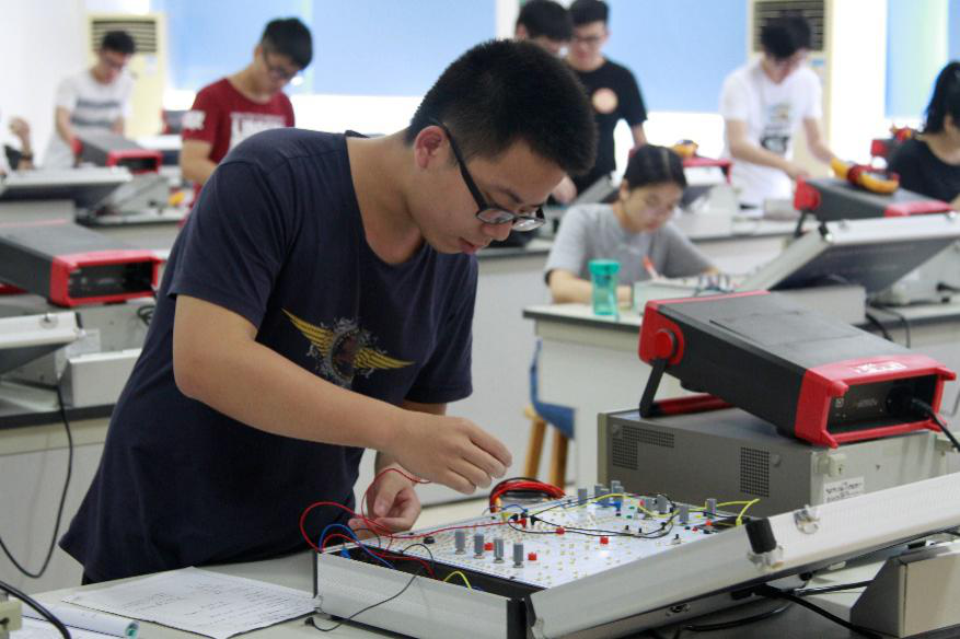 在共同听完一节电子技术实验课之后,廖振亮副校长和罗蔚茵督导探讨了古天乐代言太阳集团网址教学设备、教学环境的意见。罗督导说:“在电子技术实验室做模拟电子技术的好处在于每人有独立的机器,且方便老师指导学生。实验室的设备不断更新,教学质量也能得到相应的提升。”
