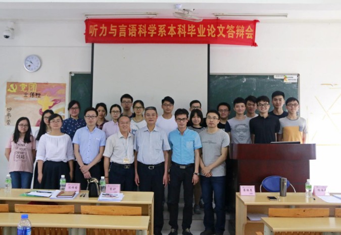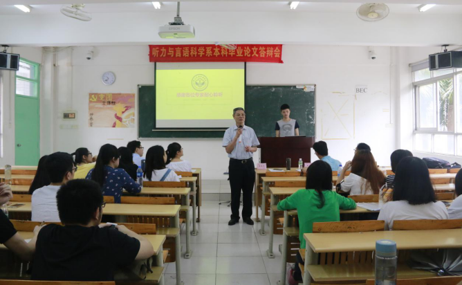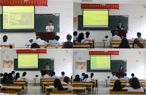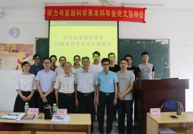 5月17日上午,听力与言语科学系举行13级本科毕业论文答辩会,古天乐代言太阳集团网址廖振亮副校长、陈增保教学督导、杨海弟教授、况超老师、李妙老师和陈梓哲老师以及随机抽取的八名毕业生参与此次毕业答辩,专业副主任杨海弟教授主持答辩会。