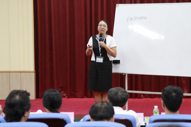 王老师举出生活中“收音机接收电路”的例子引出“串联谐振”的概念,向同学们解读了“谐振”的定义,分别讲述了“谐振角频率” 、“谐振频率”对“谐振”条件的影响,指出串联电路实现谐振的两种方式,通过题目进行了测验。接下来通过图像分析和公式讲解的方 式,分别讲述了RLC串联电路谐振时的三个特点:“谐振时U与I相同”、“谐振时出现过电压”、“L、C上的电压大小相等,相位相反,串联 总电压为0”,她还鼓励同学们将课堂学习到的专业理论知识运用到日常生活中。